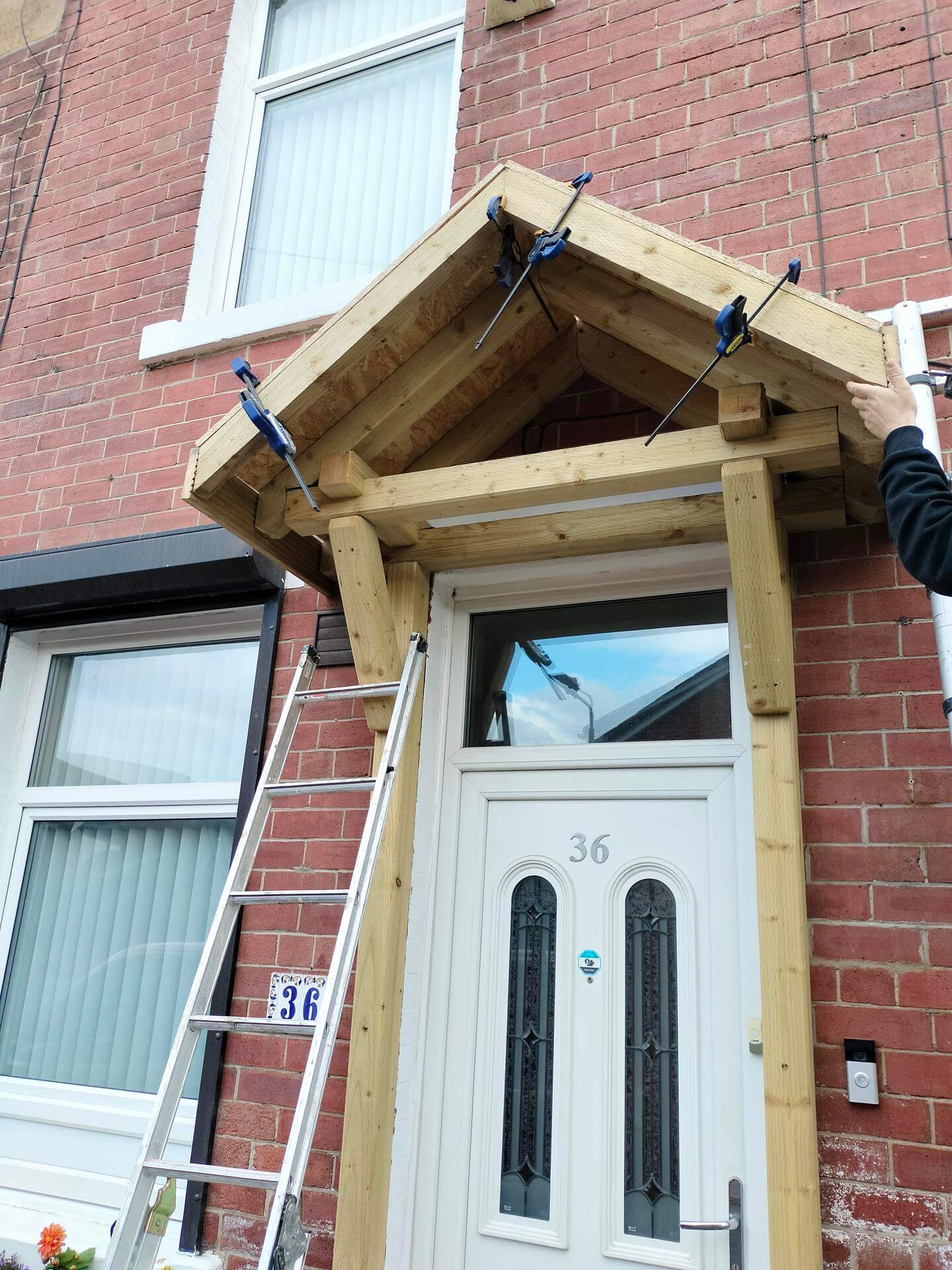 Our portfolio features a range of professionally completed front door canopy installations in Leeds and across West Yorkshire, helping homeowners improve both protection and kerb appeal. As a reliable local handyman, we supply and fit high-quality door canopies that provide shelter from rain and wind while enhancing the overall look of your property.